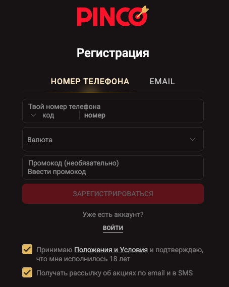 Как зарегистрироваться в Pinco